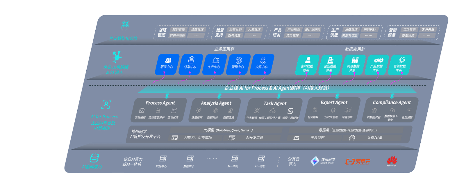 端到端的一站式AI工作空间深度融合了从企业战略规划到日常经营的全流程业务板块,,,定向解决车企内部领域多、、、、部门多、、、链条长、、场景碎片化等难题,,,支持车企快速构建以AI为核心的生产力写作体系,,实现任务执行与AI能力的无缝集成与交互
