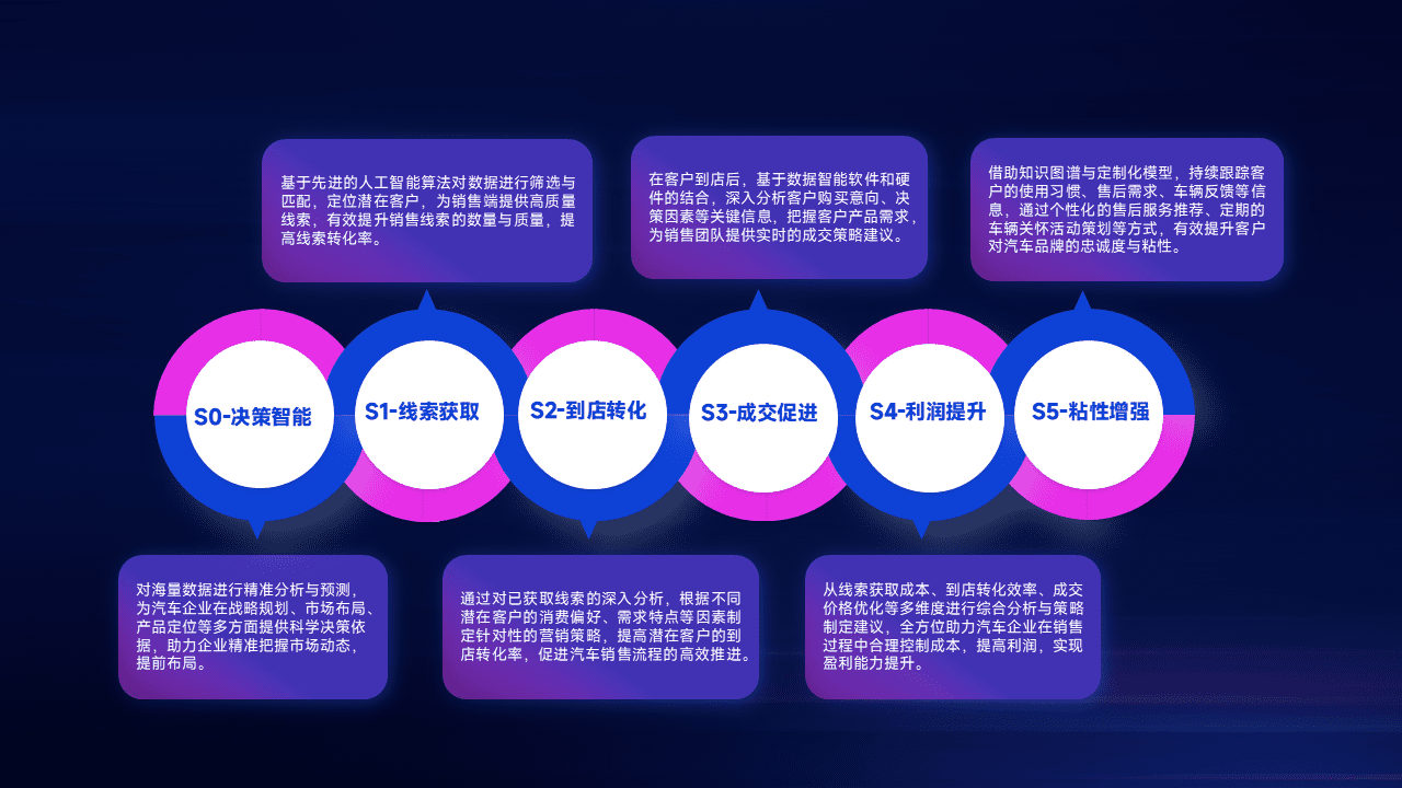 通过拓宽潜在客户来源、、、优化线索分配并提高到店转化率,,,以增强销售效率。。同时,,,,利用线索数据不断优化分析模型,,,,有效提升转化率,,,,扩大营销影响力。。。。